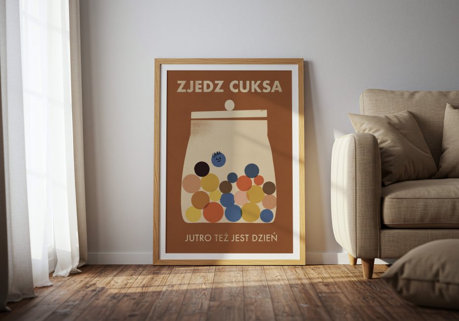 Cyfrowy wydruk autorskiej ilustracji. Zaprojektowany i wydrukowany w Polsce.