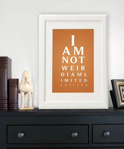 Plakat z autorską grafiką z ukrytym tekstem: I am not weird i am limited edition. Możliwa zmiana kolorów na jeden z siatki kolorów . Plakat formatu: 329x483 mm - A3+ . Wydrukowane na grubym papierze 192 g/m2 - Archival Matte Heavywight Paper. Wysoka jakość wydruku. Wspaniale wygląda w ramie z Passe-partout (pasują standardowe rozmiary ram z marketów, Ikea itp). Cena nie obejmuje ramy i Passe-partout przedstawionych na zdjęciach.