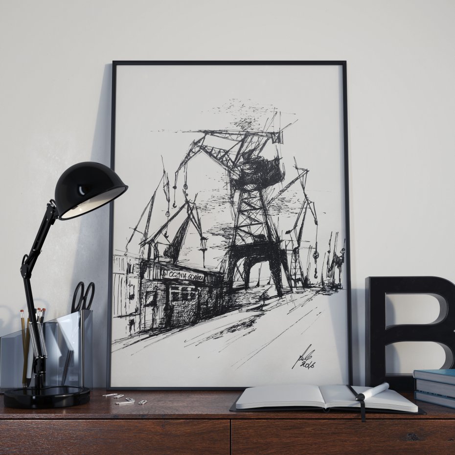Piękna nowoczesna grafika przedstawiaca Gdańsk.