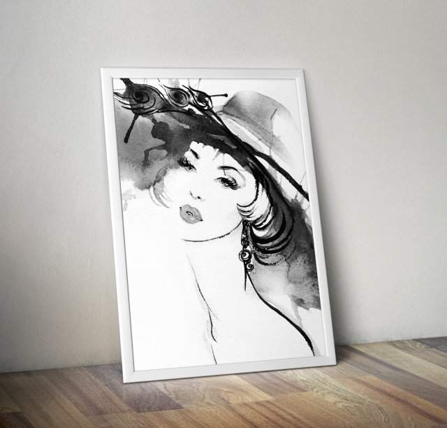 Piękny plakat - ilustracja Kobieta w kapeluszu do domu, biura, restauracji czy też hotelu. Wydrukowany jest na papierze o gramaturze 300 g/m2 o satynowanej powierzchni, która przeznaczona jest do wydruków grafik artystycznych oraz fotografii. Wydruki dzięki temu prezentują się efektownie i elegancko, a wysoka trwałość druku zapewnia idealny stan przez długi czas.
