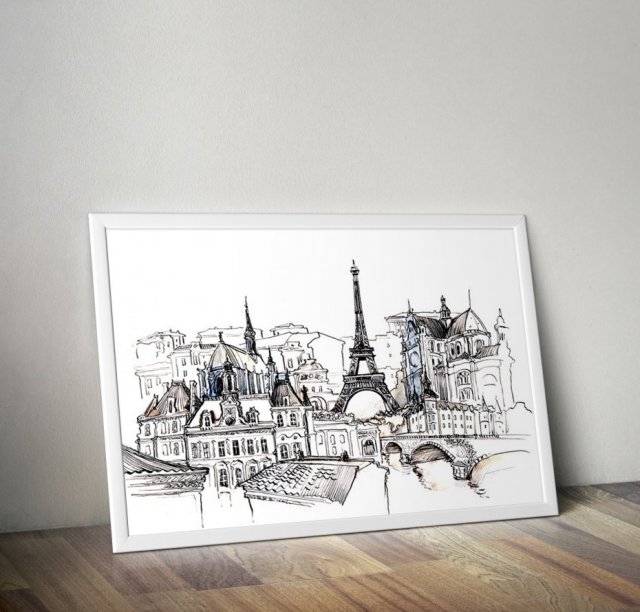 Piękny plakat - ilustracja miasta Paryż do domu, biura, restauracji czy też hotelu. Wydrukowany jest na papierze o gramaturze 300 g/m2 o satynowanej powierzchni, która przeznaczona jest do wydruków grafik artystycznych oraz fotografii. Wydruki dzięki temu prezentują się efektownie i elegancko, a wysoka trwałość druku zapewnia idealny stan przez długi czas.