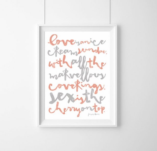 "Love is an ice cream sundae, with all the marvellous coverings. Sex is the cherry on top."