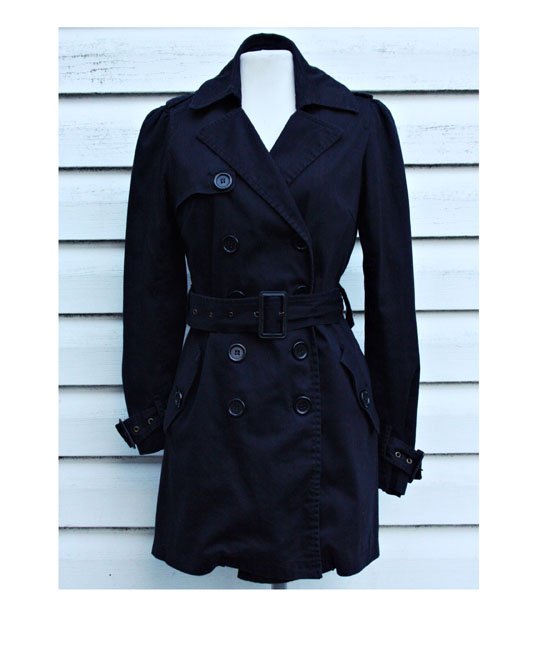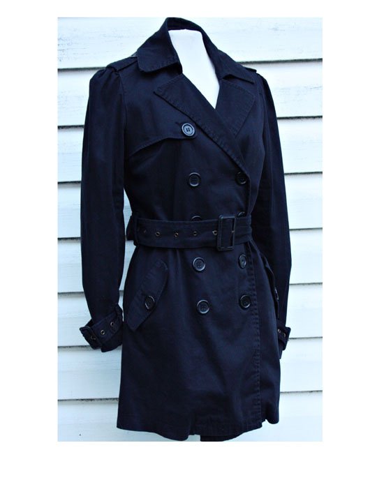 Czarny zapinany na guziki płaszczyk ,trencz,na podszewce