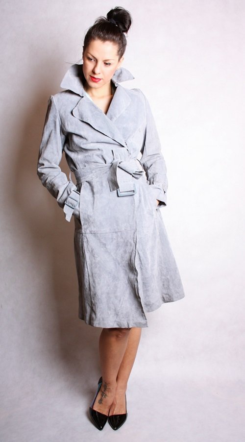 Jasno szary płaszcz,na podszewce,z miekkiego zamszu,stan bardzo dobry, jedynie rekawy do czyszczenia.nie noszony,rozm z metki 40(L),zdjęcie wykonane na osobie noszacej rozm S/170cm wzrostu