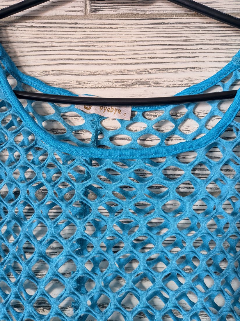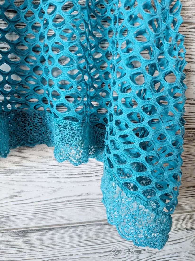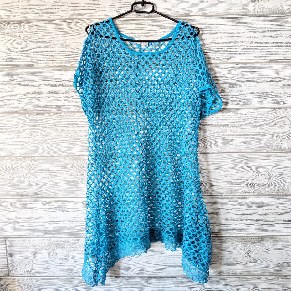 Błękitna ażurowa tunika.