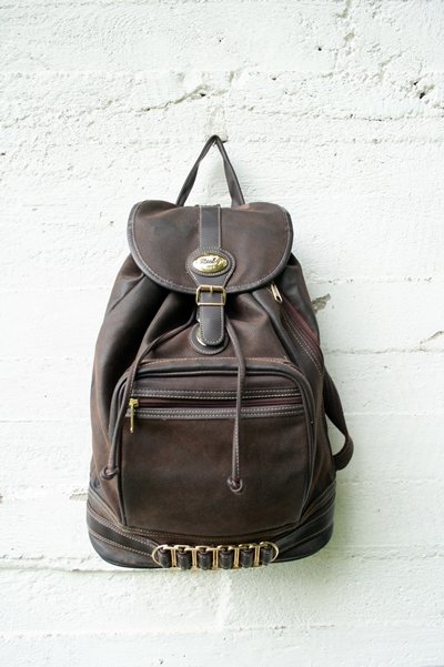 Brązowy plecaczek ze skóry ekologicznej, lekko uszkodzony pasek. mozna nosić na dwa sposoby.