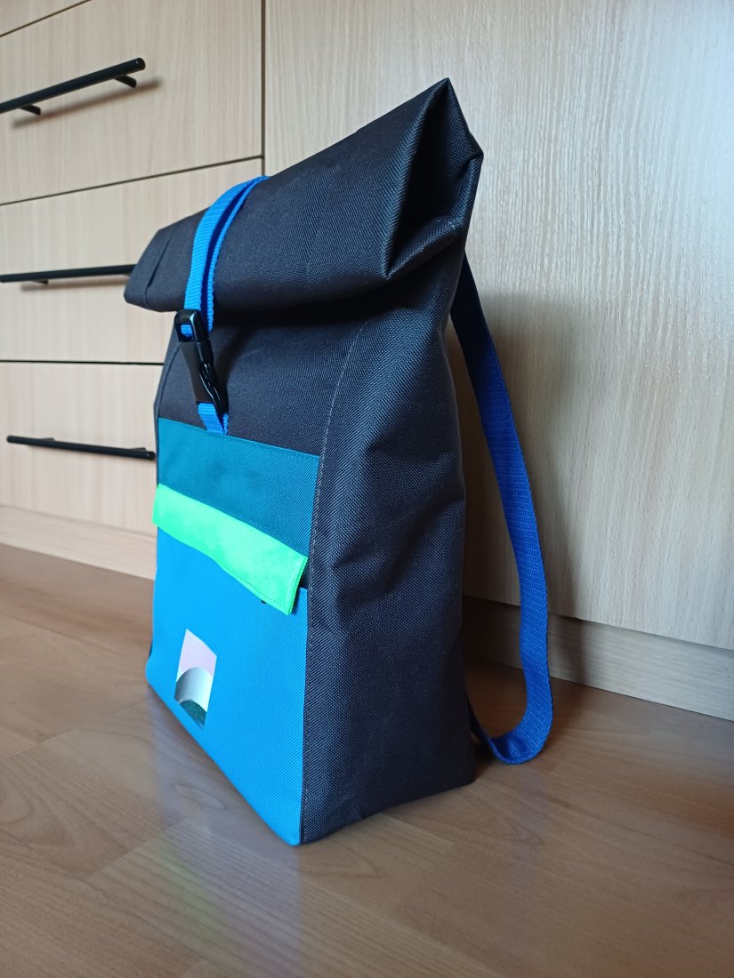 Plecak rolltop z usztywniana kieszenia na np laptopa. Pomieści format A4.