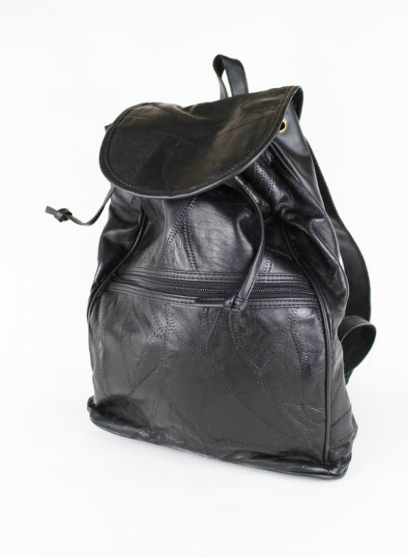 Świetny plecak wykonany ze skóry naturalnej. Ciekawy wzór łatek. Z tyłu szelki a u góry rączka do trzymania. U góry również ściągacz wiązany w kokardę oraz zapięcie na metalowy zatrzask. Z przodu na zewnątrz kieszonka na ekspres. Wnętrze pojemne. Wewnątrz dodatkowo boczna kieszonka na ekspres. Tył z ekoskóry Wewnątrz podszewka. Stan bardzo dobry.