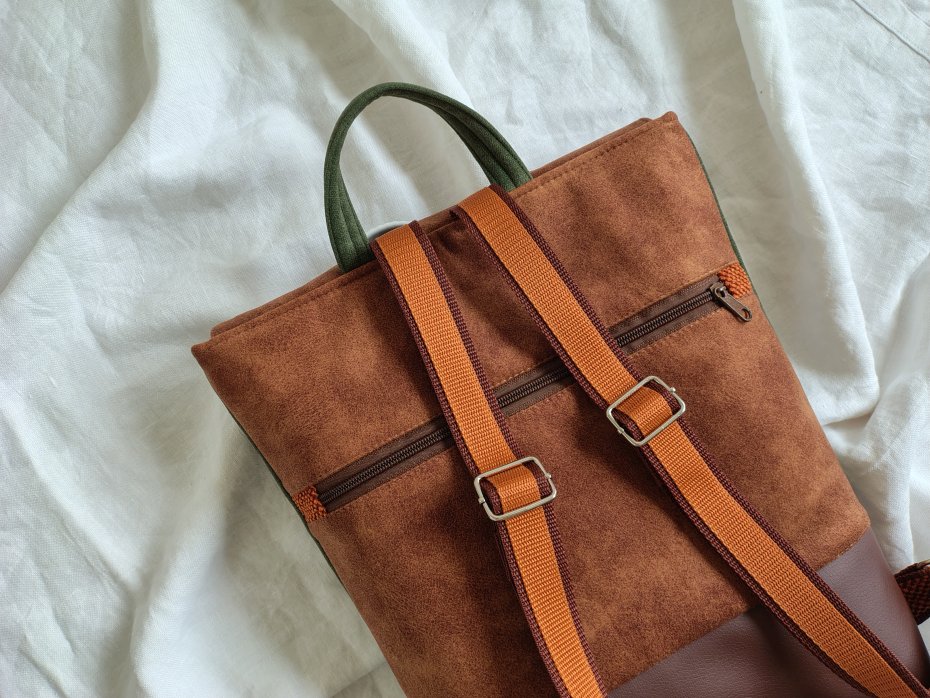 Tagi: #damski plecak, #sztuczna skóra, #tkanina tapicerska, #uszyte maszynowo
