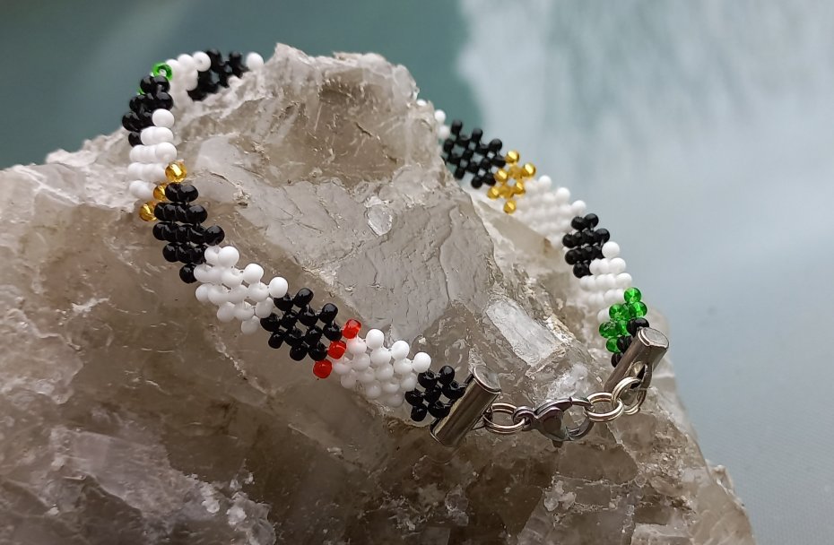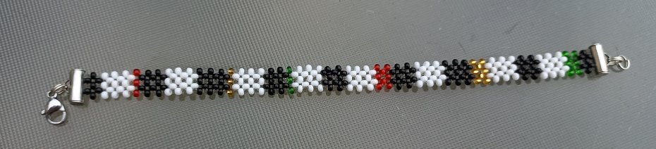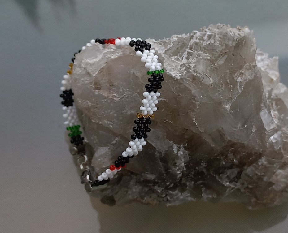 • Zostałam wprowadzona w tę technikę bezpośrednio przez Masajów w Tanzanii. Nie jest to imitacja, ale splot wywodzący się z oryginalnej, koralikowej sztuki tego plemienia.