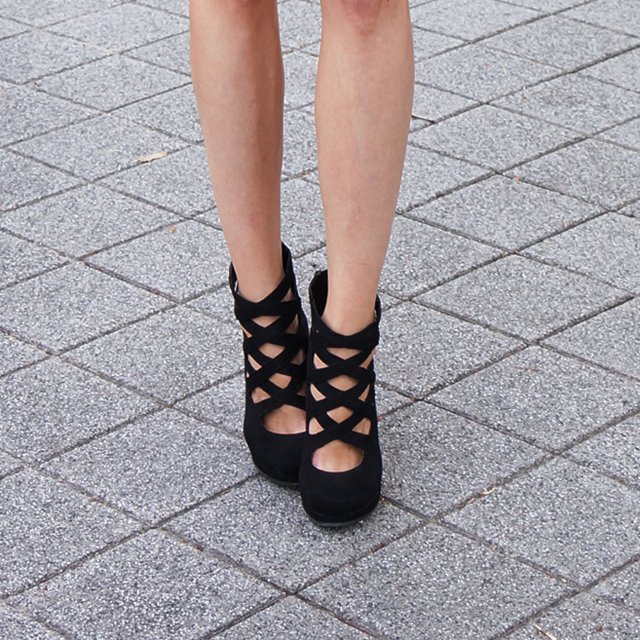 Prześliczne unikalne buty na obcasie z uroczą plecionką z przodu