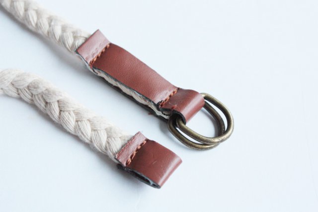 Pleciony, kremowy pasek o regulowanym obwodzie.
