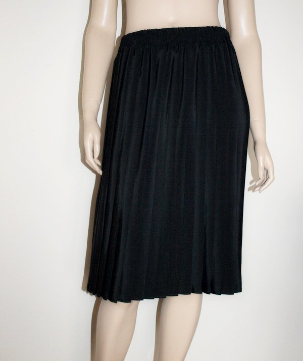 czarna plisowana spódnica produkcji angielskiej. Materiał 100% poliester w pasie guma. brak metki z rozmiarem. Podaję wymiary mierzone na płasko;
