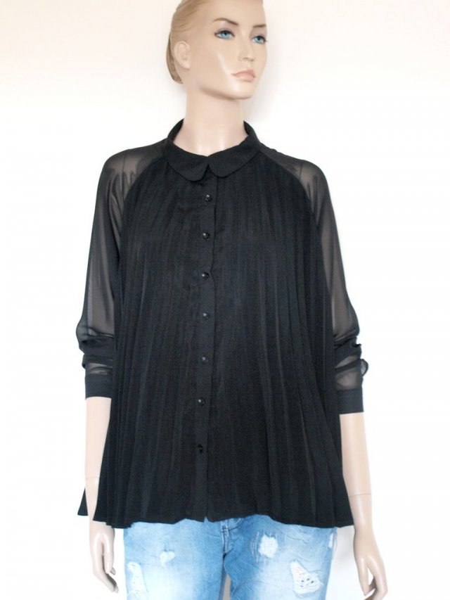 śliczna koszula marki bik bok. Materiał prawdopodobnie poliester (brak metki). koszula jest plisowana z transparentnymi rękawami. rozmiar z metki L, powinna pasować na 38-42. stan bardzo dobry. Podaję wymiary mierzone na płasko;