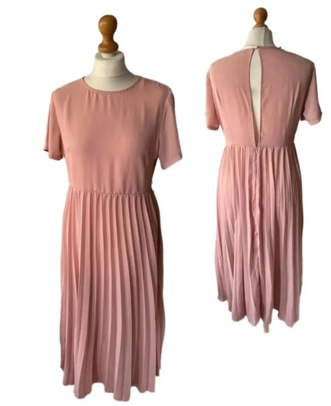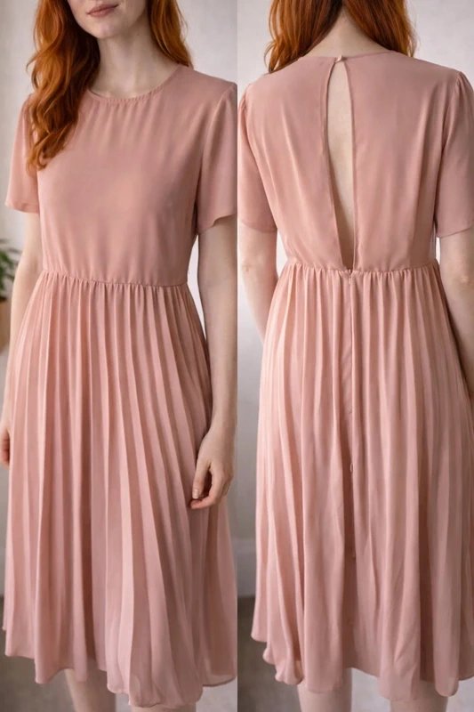 Różowa plisowana sukienka z odkrytymi plecami – rozmiar 38