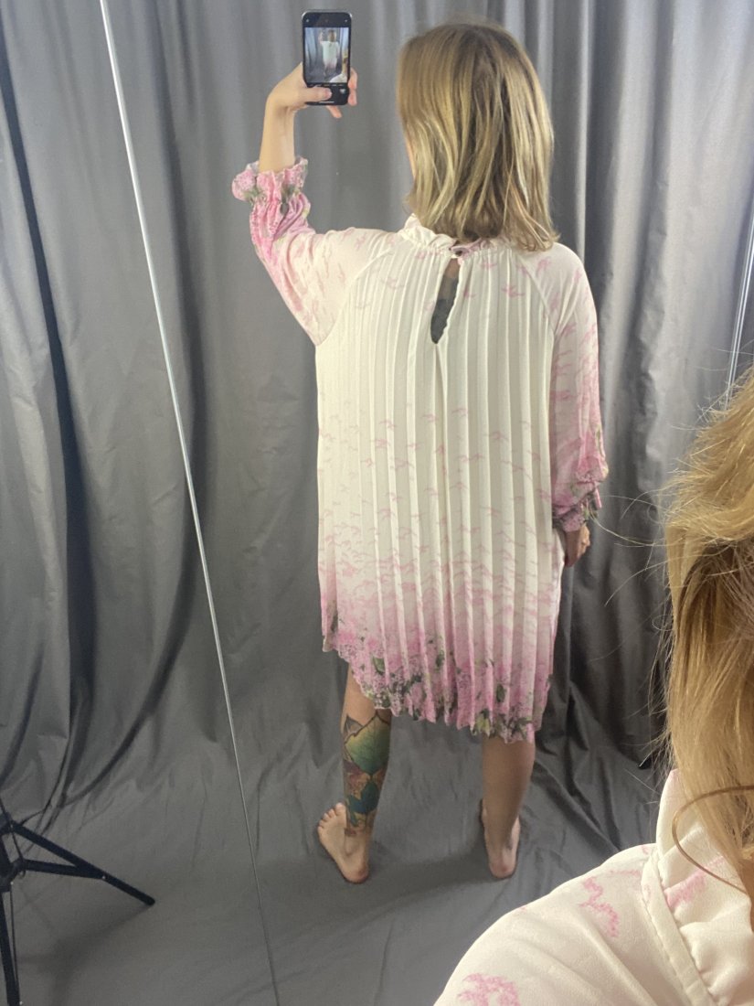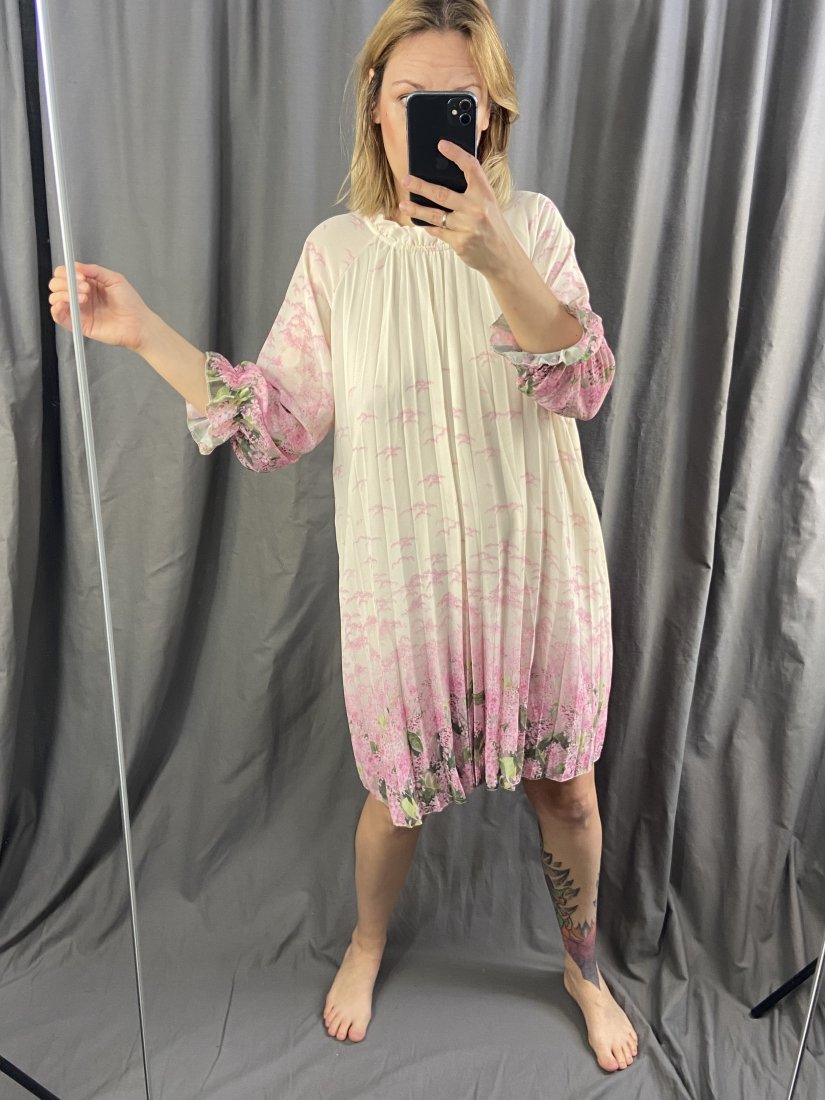 Śliczna, dwuwarstwowa, plisowana sukienka w japońskim stylu. Materiał to taka żorżetka.