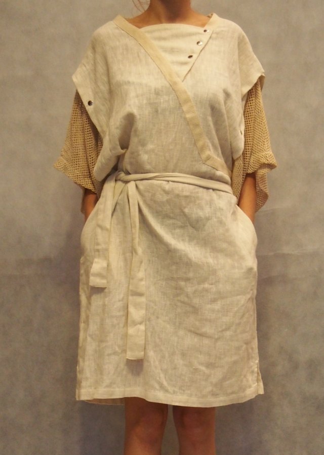 Świetna bawełniana sukienka o mega designerskim kroju. Dwie kieszonki wiązana paskiem.