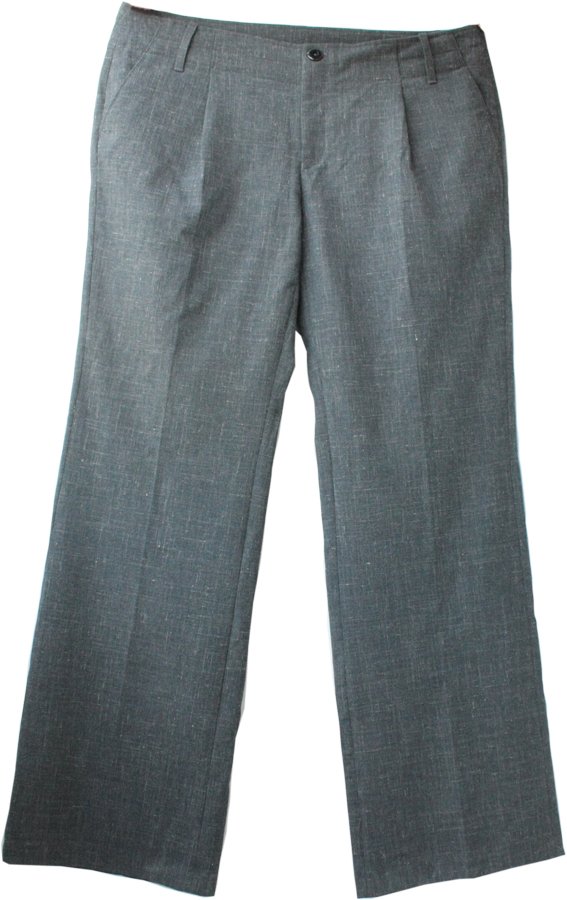Szare, eleganckie spodnie marki Bruuns Bazaar (linia BZR). Z przodu od góry do połowy łydki naturalna podszewka zapobiegająca wypychaniu kolan i pomagająca w dobrym utrzymaniu formy spodni. Zapięcie na "męską" stronę.