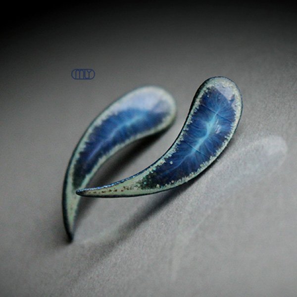 Ceramiczne podłużne kolczyki, ręcznie wykonane z delikatnej gliny kamionkowej, jednostronnie szkliwione mieszanką błękitnychh szkliw z efektem plamek, tył matowy błękitny na antyalergicznych sztyftach w kolorze srebrnym.długość ok 2,8cm. Polecam