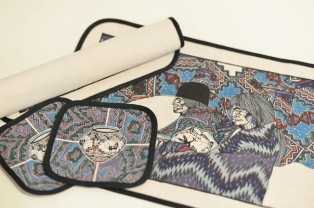 * komplet obszytych podkładek z ciekawym nadrukiem (na stół, biurko, do jadalni itp.)