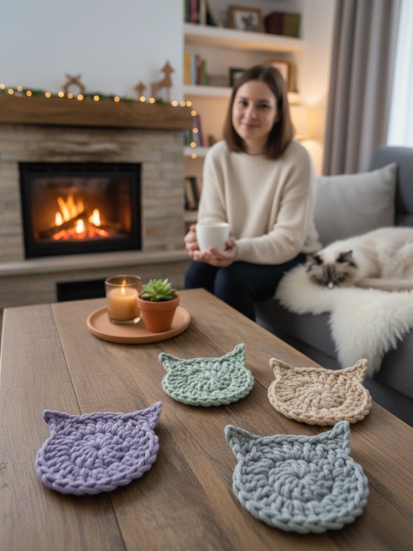 Urocze podkładki koty na szydełku – handmade z charakterem