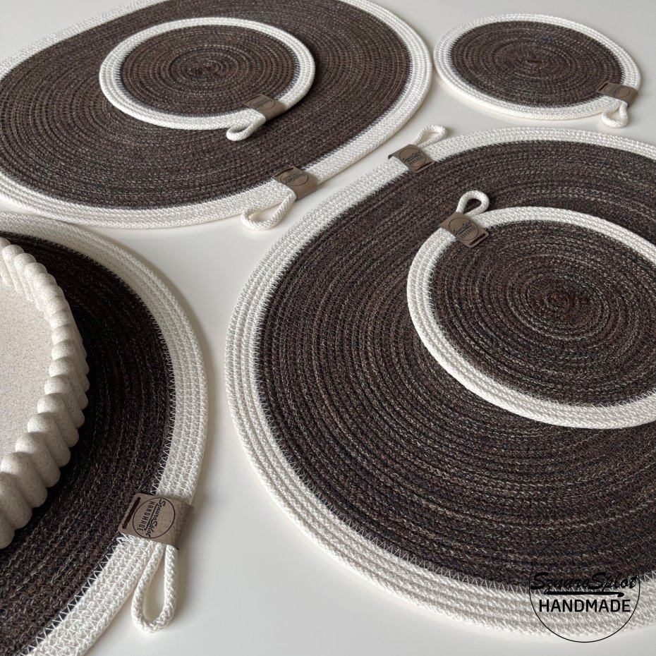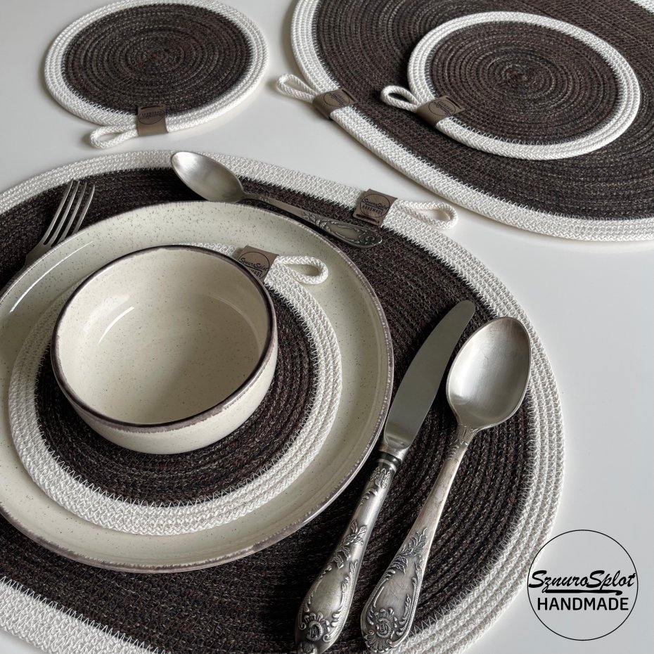 Tagi: #do salonu, #na stół pod talerze, #ozdoba stołu, #podkładki ze sznurka