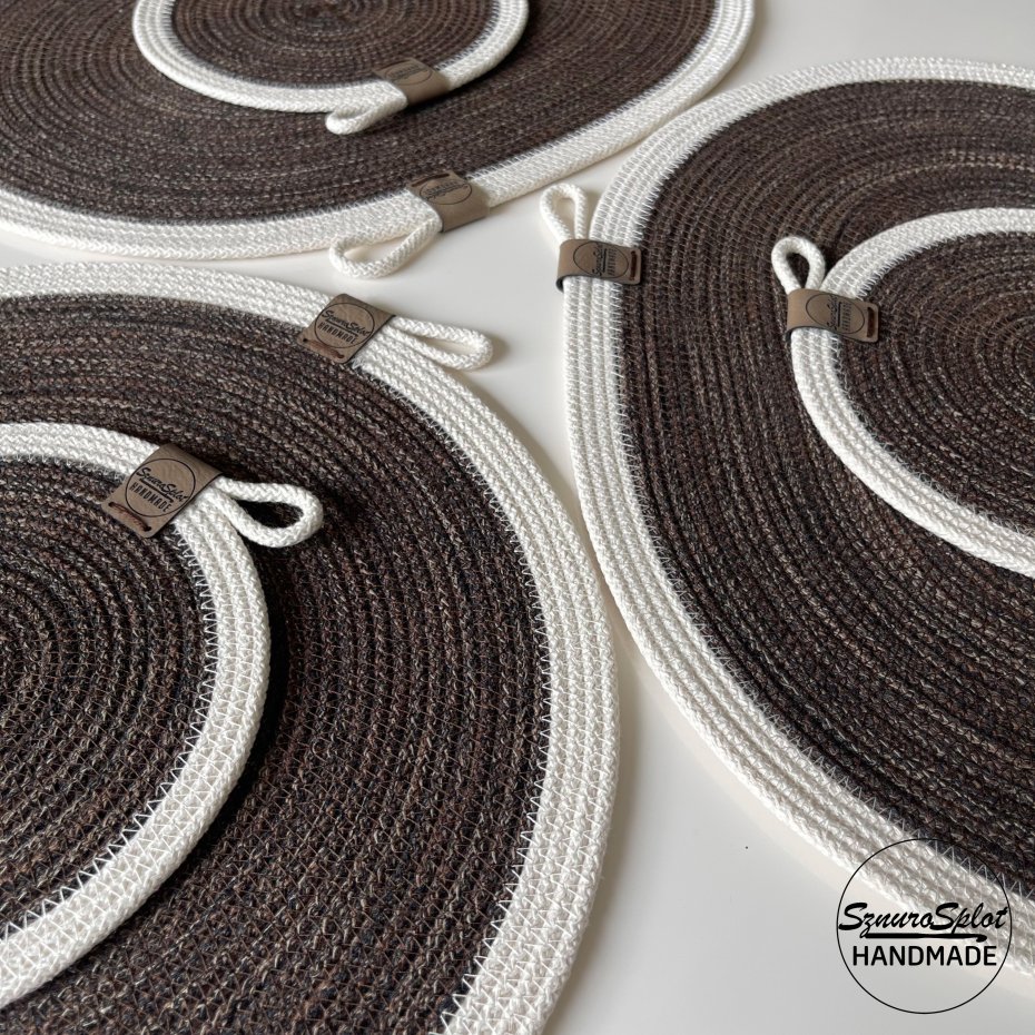 Owalne dwukolorowe podkładki ze sznurka bawełnianego, na życzenie mogą być także jednokolorowe.