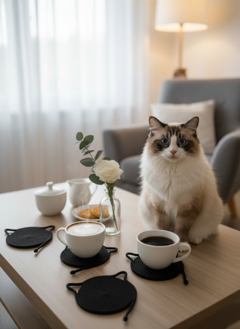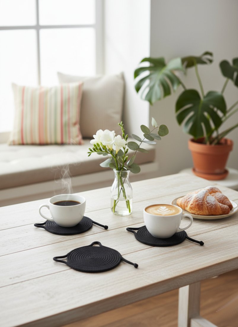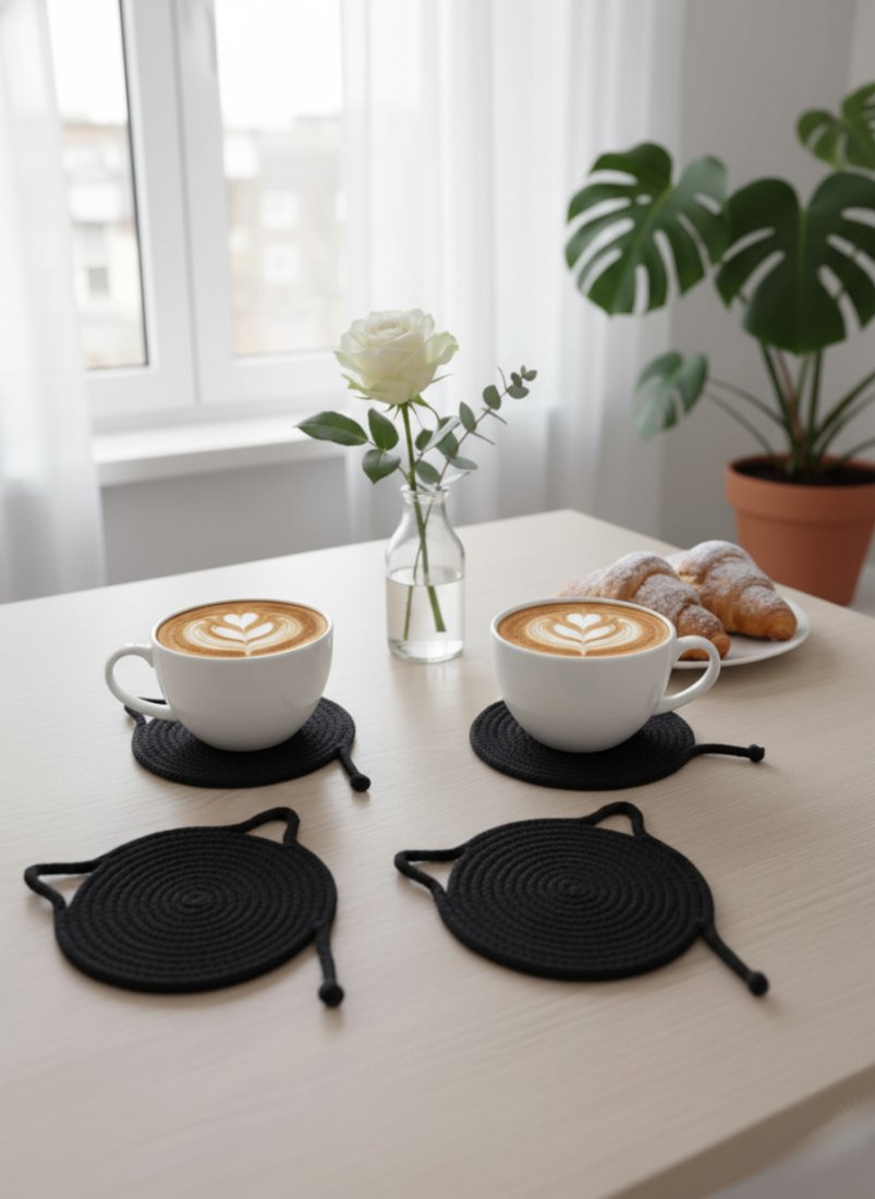 Poszukujesz uroczego i praktycznego dodatku na swój stół? Oto podkładki pod kubek ze sznurka bawełnianego z motywem kotów! Te słodkie podkładki są wykonane z bawełny z recyklingu, co sprawia, że są nie tylko estetyczne, ale także przyjazne dla środowiska.