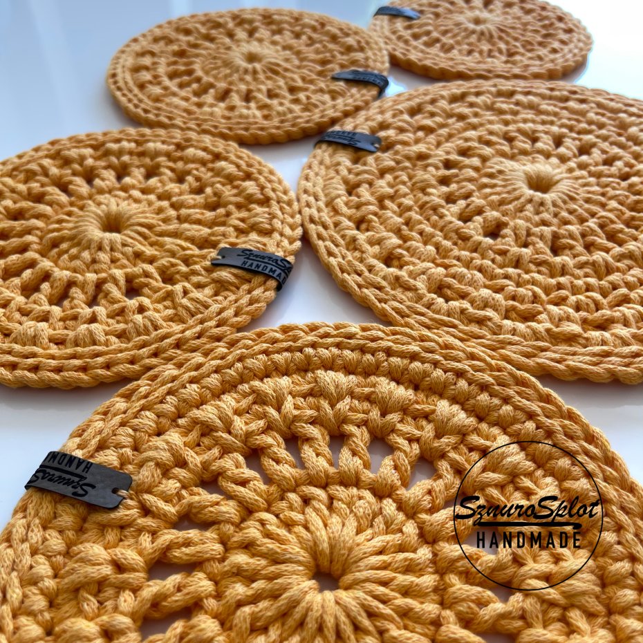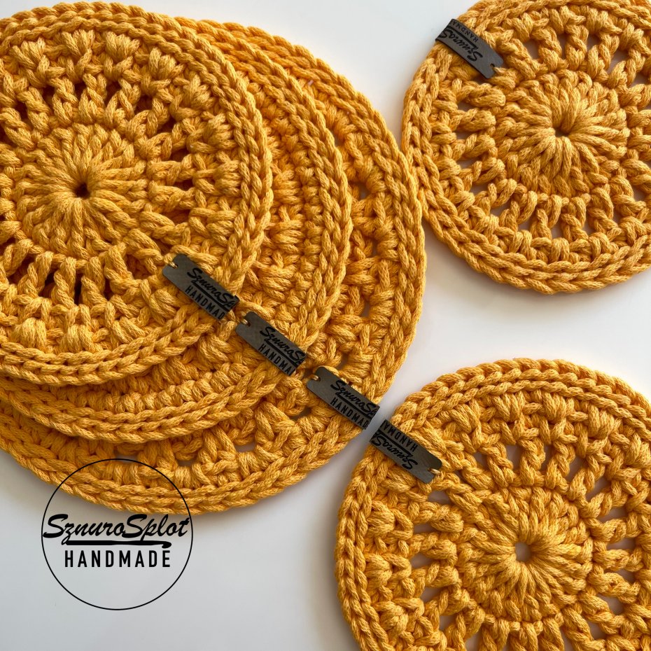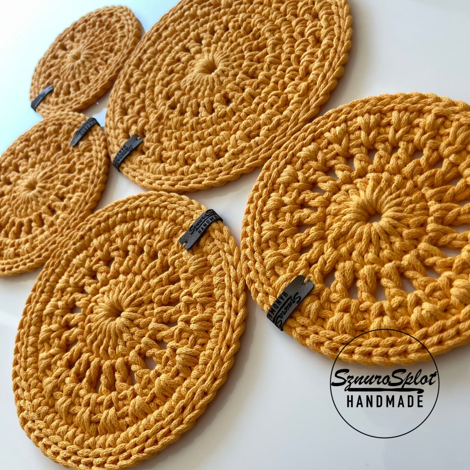 Podkładki na stół ze sznurka bawełnianego szydełkowane na zlecenie klienta.