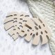 Zestaw drewnianych podkładek pod kubki w kształcie liścia monstery. Idealne dla miłośniczki ciepłej herbaty lub kawy. Podkładki mają kolor naturalnego drewna. Cena dotyczy 4sztuk.
