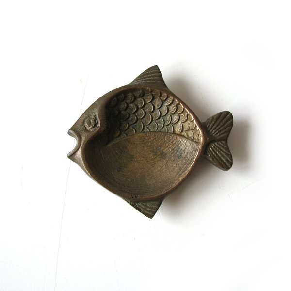 Uroczy maleńki podstawek na torebkę od herbaty. Okrągły, w kształcie rybki, oryginalny dodatek do wnętrza, wykonany z mosiądzu.