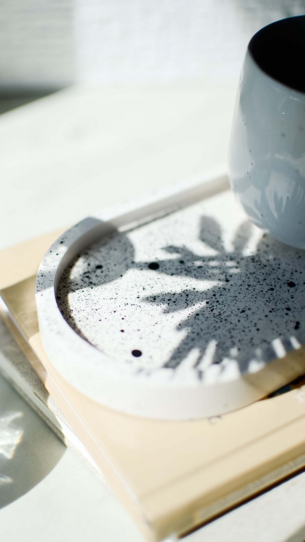 Podstawka owalna z gipsu polimerowego, który jest przyjazny dla środowiska. Każda podstawka jest w 100% robiona ręcznie, dlatego jest unikatowa i nigdy nie będzie dwóch takich samych.