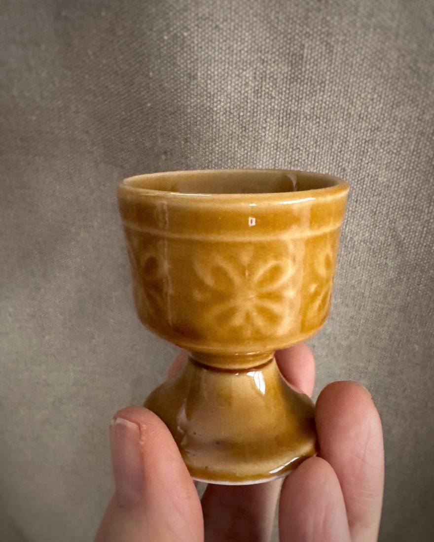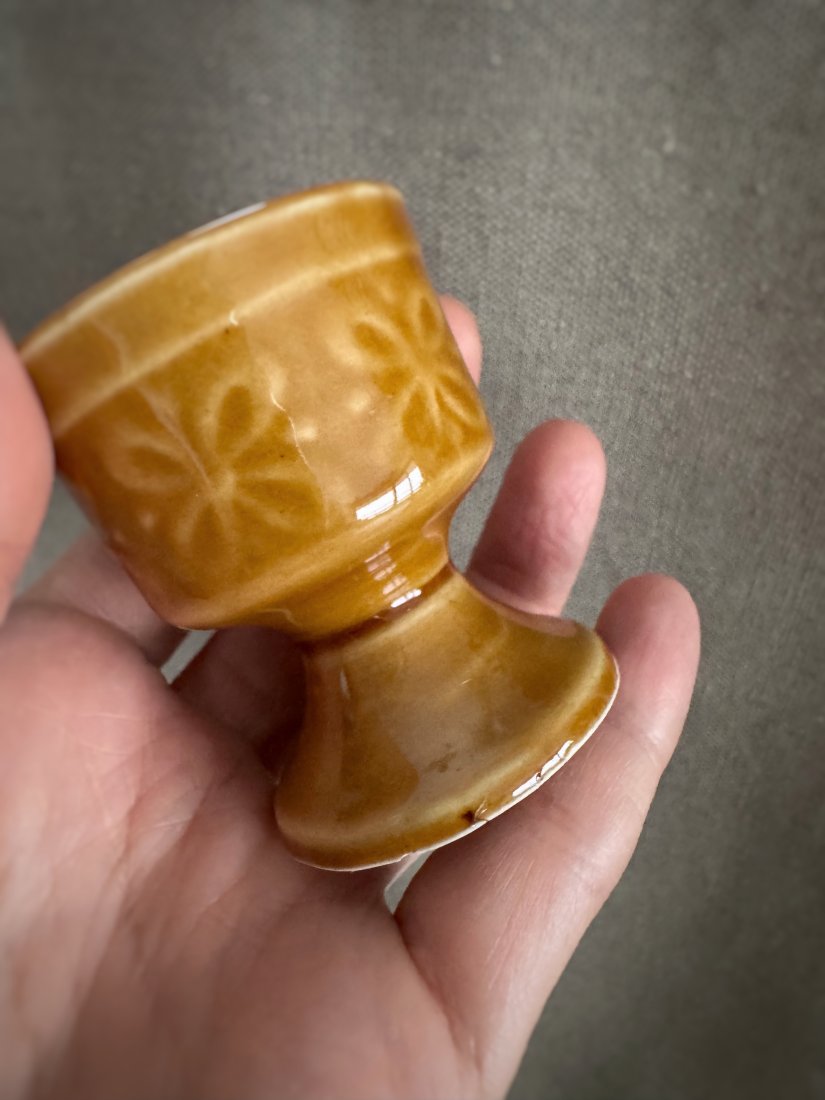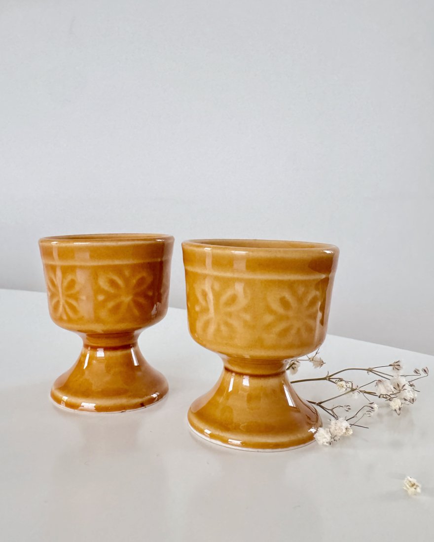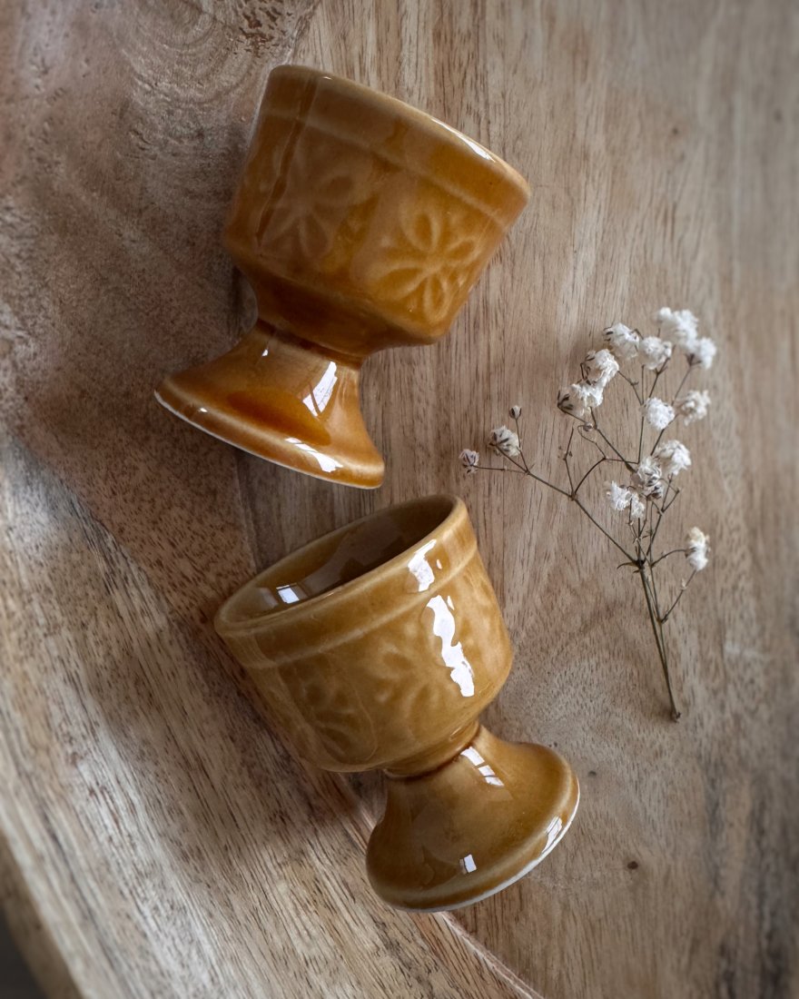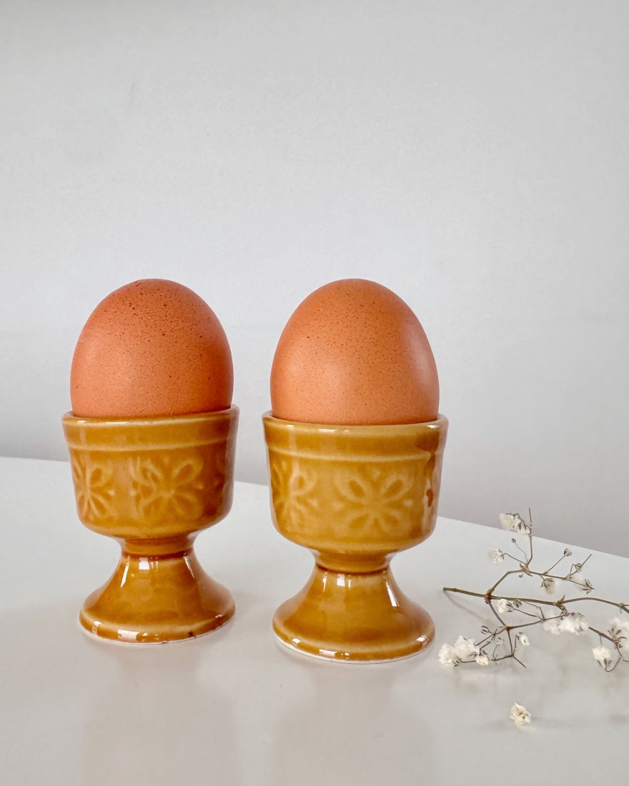 Podstawka pod jajko z porcelitu, wzór Werina, kolor karmelowy.