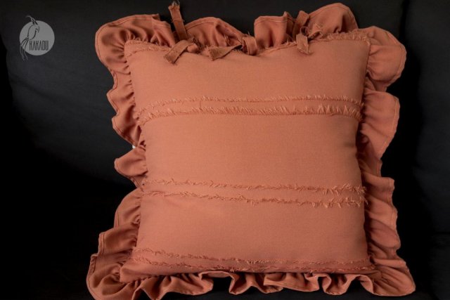 Poduszka uszyta z wiskozy w pięknym, ceglastym, pastelowym kolorze.