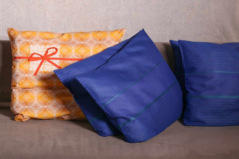 Był bawełniany szal. Teraz 4 poduchy nasycone kolorem. 4 sztuki. Bawełna 100%. Wymiary 55x45