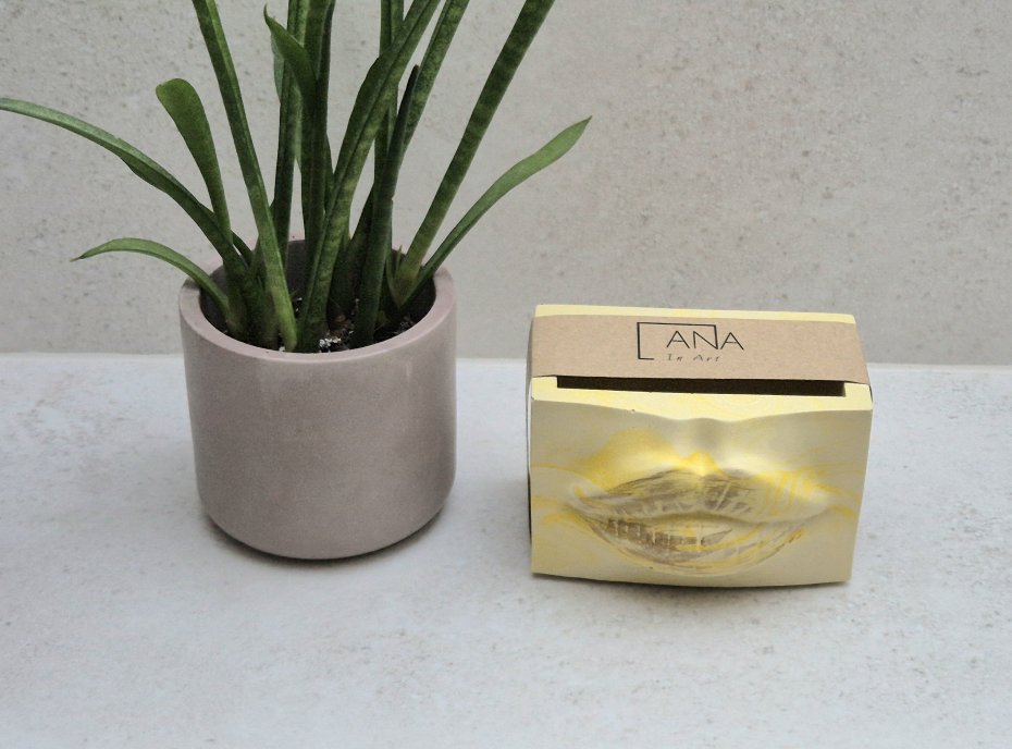 Unikatowy pojemnik z motywem ust to odważna, a jednocześnie pełna wdzięku propozycja do nowoczesnego wnętrza. Wykonany ręcznie z gipsu polimerowego, stanowi świetną alternatywę dla klasycznych dekoracji. Jego nietuzinkowy design przyciąga spojrzenia, a kompaktowy rozmiar sprawia, że z łatwością znajdzie miejsce i zorganizuje przestrzeń w łazience, na biurku, toaletce lub półce.