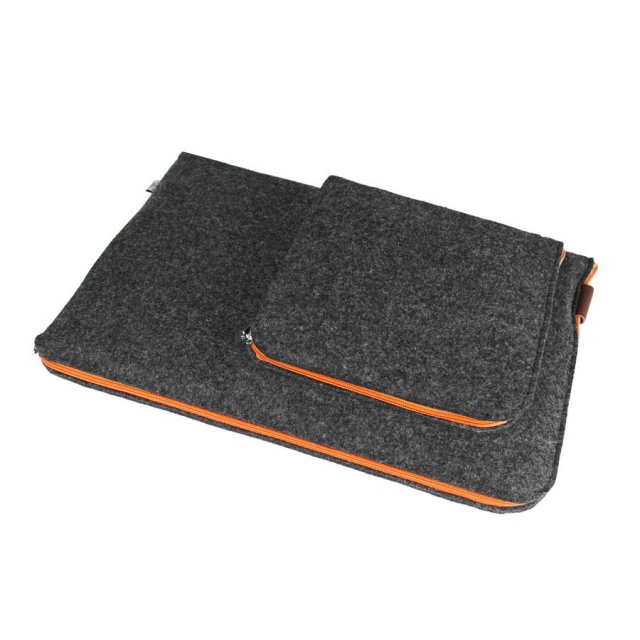 Pokrowiec z filcu na laptopa / tablet z naszytą dodatkową kieszonką na zasilacz.
