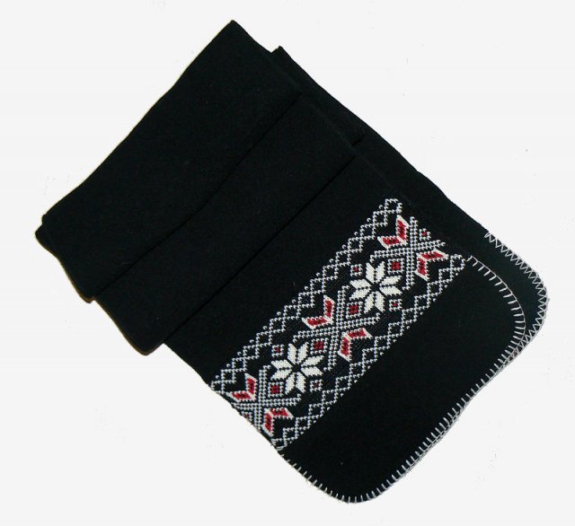 Gruby, podwójnie składany i bardzo ciepły polarowy szal z norweskim haftem.