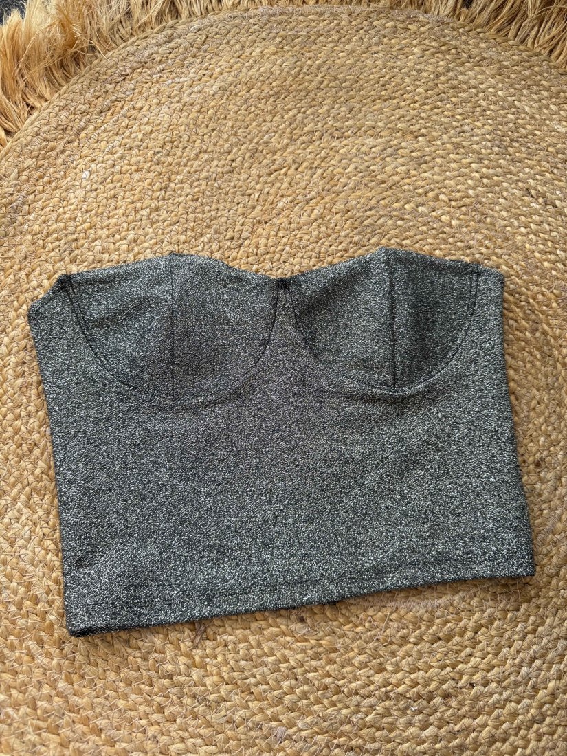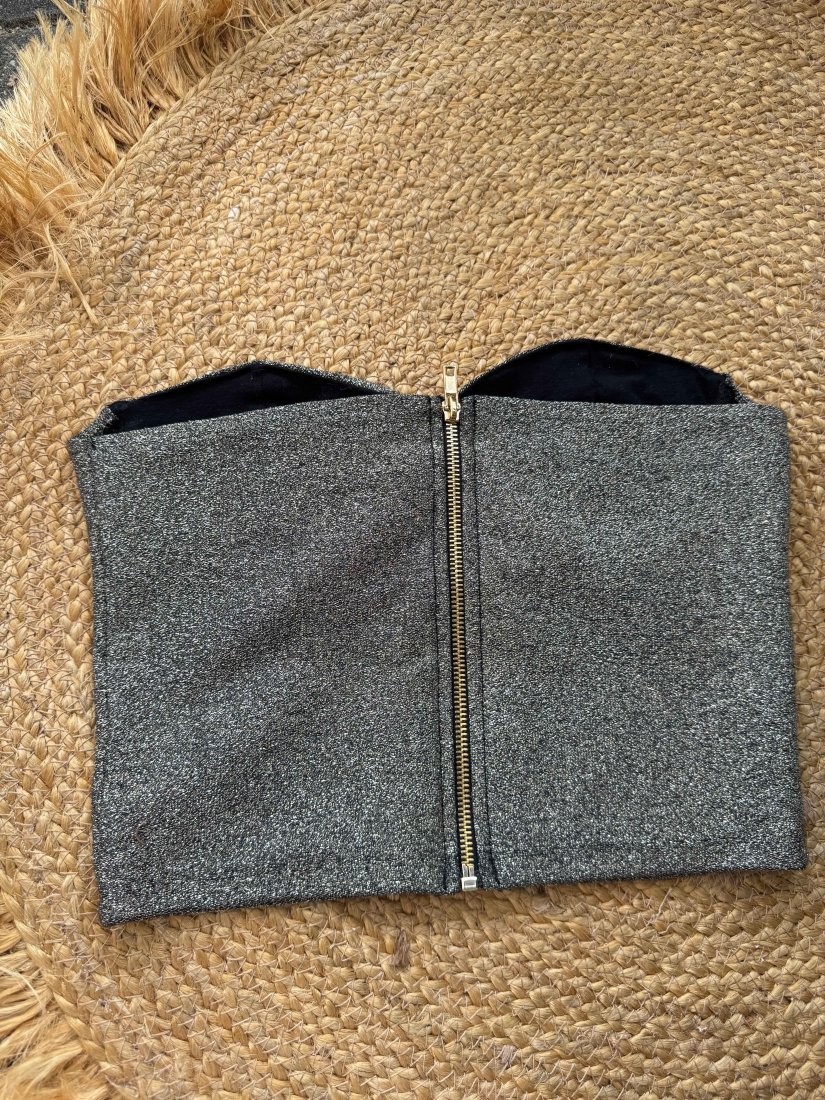 Czarny półgorset ze złotym brokatem. Jest elastyczny. Z tyłu zapina się na suwak w kolorze złotym.