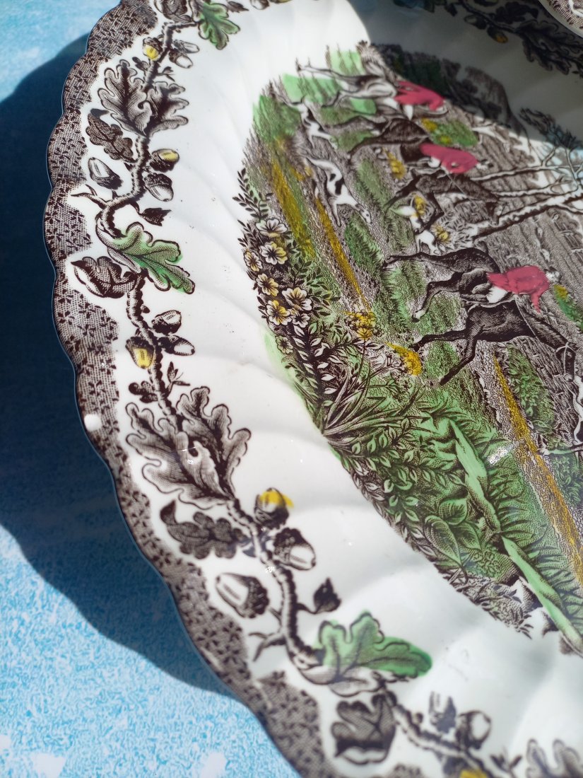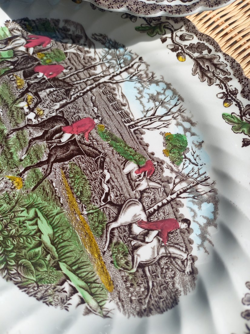 Półmisek i salaterka w cudny wzór z polowaniem.