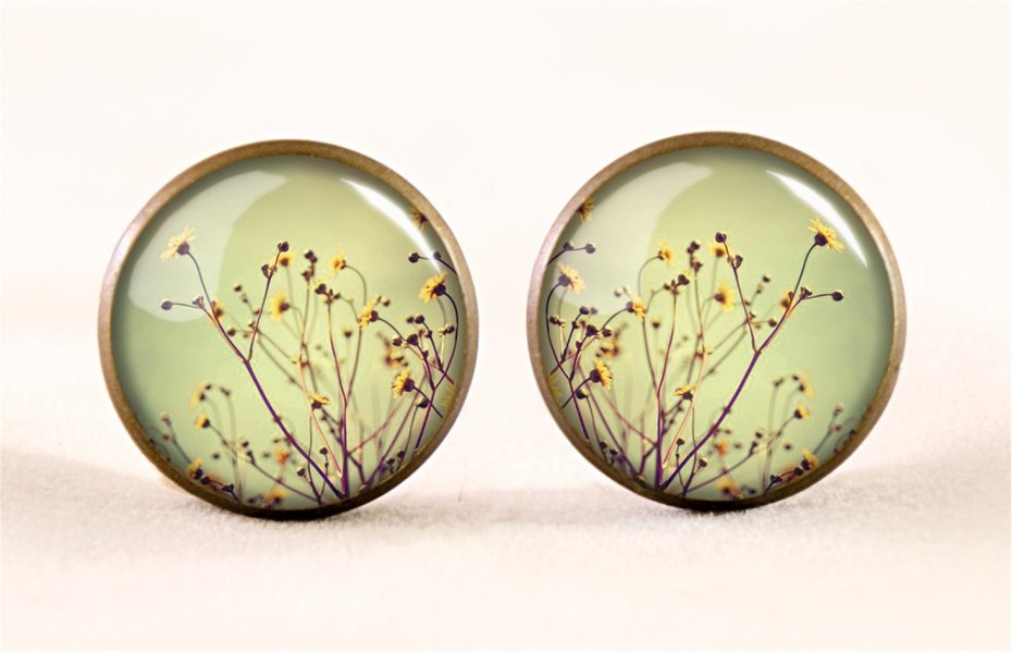 Ręcznie robione kolczyki sztyfty z wysokiej jakości grafiką pokrytą wypukłym, powiększającym szkiełkiem.