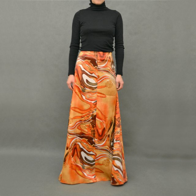 Spódnica maxi z grubszej satyny w pomarańczowych kolorach. Zapinana z boku na zamek.