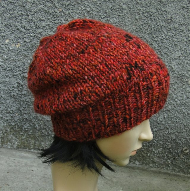 Czapa wykonana ręcznie na drutach z rewelacyjnej włóczki prod. portugalskiej ( 50% wool, 10 % alpaka, 40% akryl), ciepła i bardzo przyjemna w dotyku, bezszwowa. Melanż odcieni pomarańczu, czerwieni, koralu i czerni ! Rozmiar czapki : obwód od 55 do 58 cm, wysokość ok. 28 cm. Bardzo twarzowa. Dużo ładniejsza, niż na zdjęciach, kolory sa odrobinę spokojniejsze! Polecam.