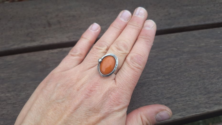 Tagi: #pierścionek z jadeitem, #pomarańczowy pierścionek, #regulowana obrączka, #regulowany pierścionek