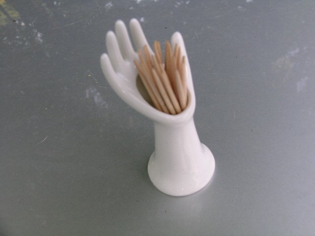 Niewielka Porcelanowa Praktyczna , Dowcipna, Ozdobna ....DŁOŃ. Nie sygnowana,ale ładnie wykonana. Wazonik,pojemnik na wykałaczki,patyczki...Na błyszcząco szkliwiona.