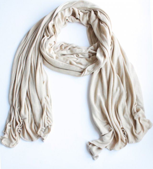 Miękki, wielki szal w odcieniu klasycznego beżu to ponadczasowy dodatek, który będzie pasował do wszystkich strojów. Tkanina jest lekko sprężysta i ładnie się układa.
