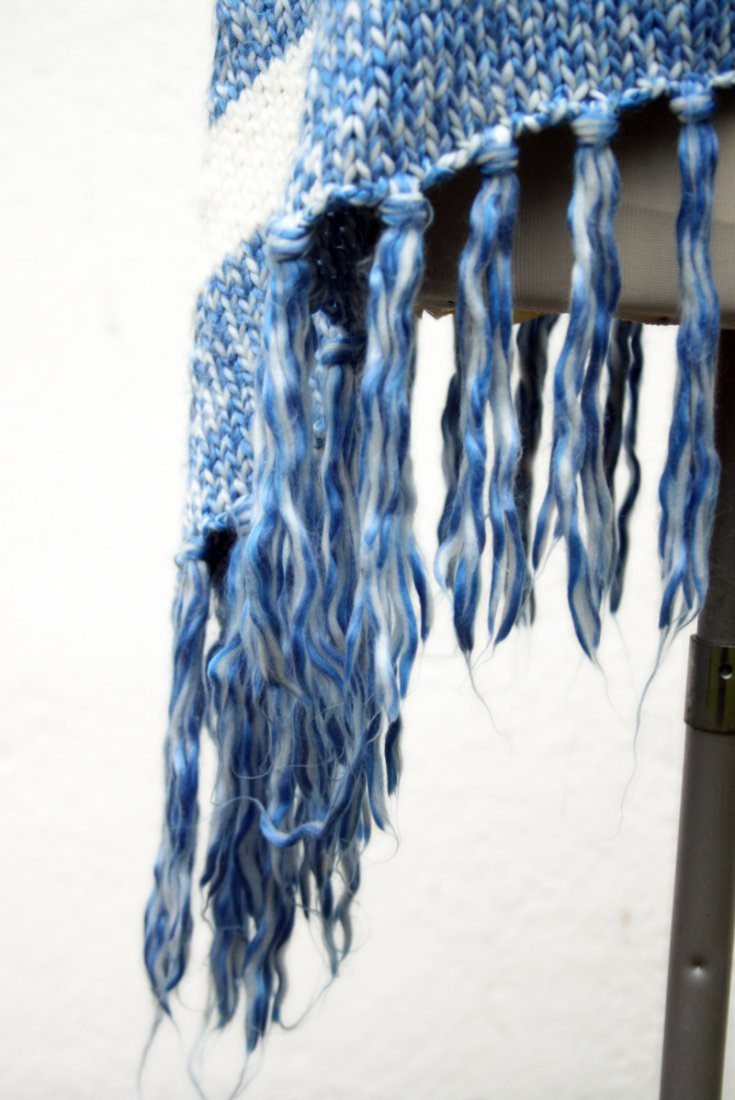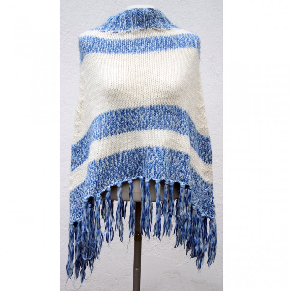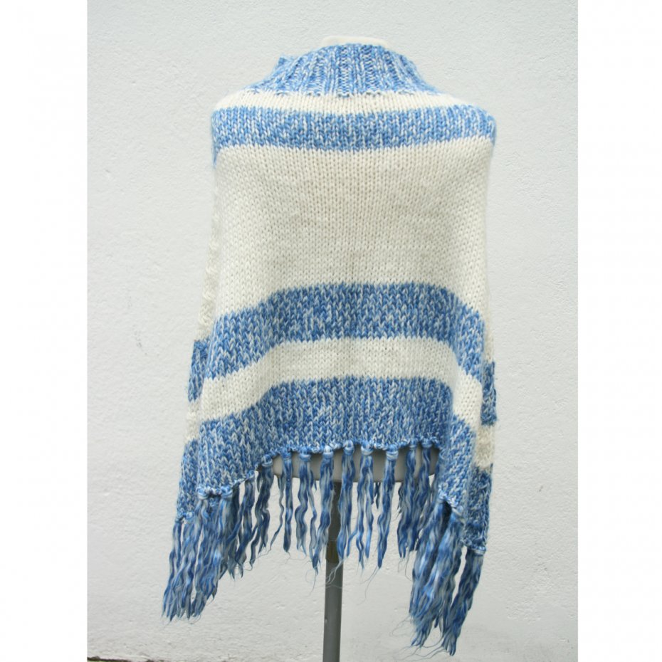 Biało - niebieskie ponczo z grubego akrylu/100% akryl/