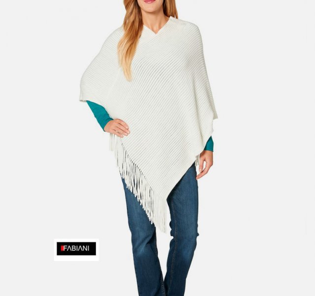 Piękne mięciutkie ponczo niemieckiej marki Fabiani. Kolor kremowej bieli.