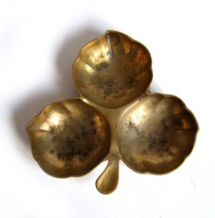 Piękna popielnica w kształcie koniczyny. Wykonana z mosiądzu.