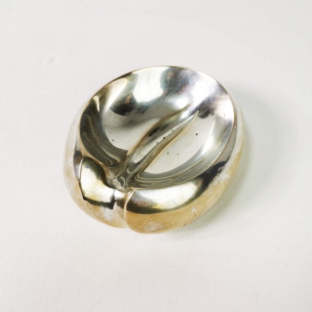 mosiężna popielniczka, stan zachowania dobry, widoczne rysy, delikatne...